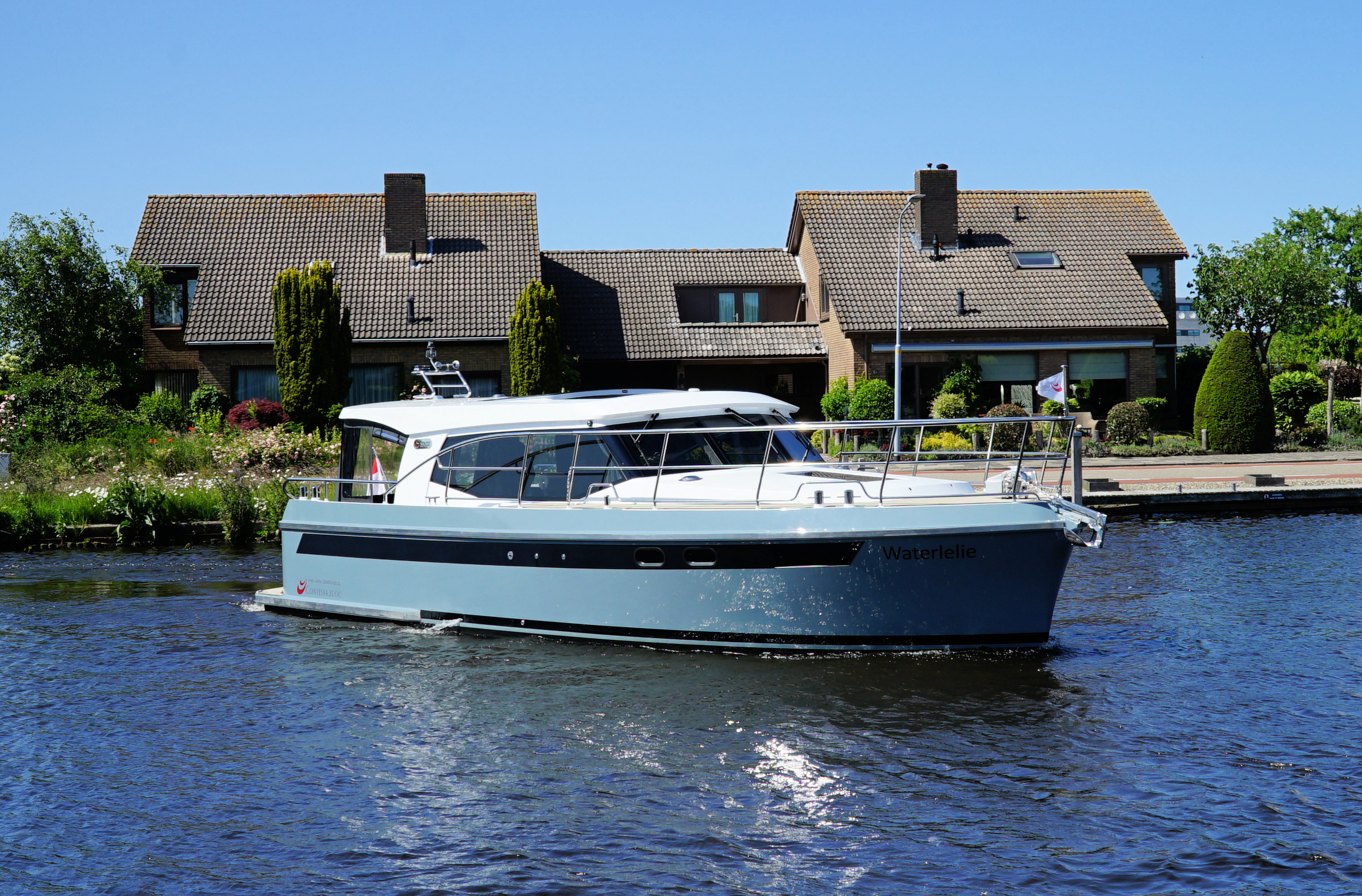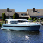 Die Contessa 35 OC ist eine luxuriöse Stahlmotoryacht mit offener Plicht, ausgelegt für komfortables Reisen zu zweit.