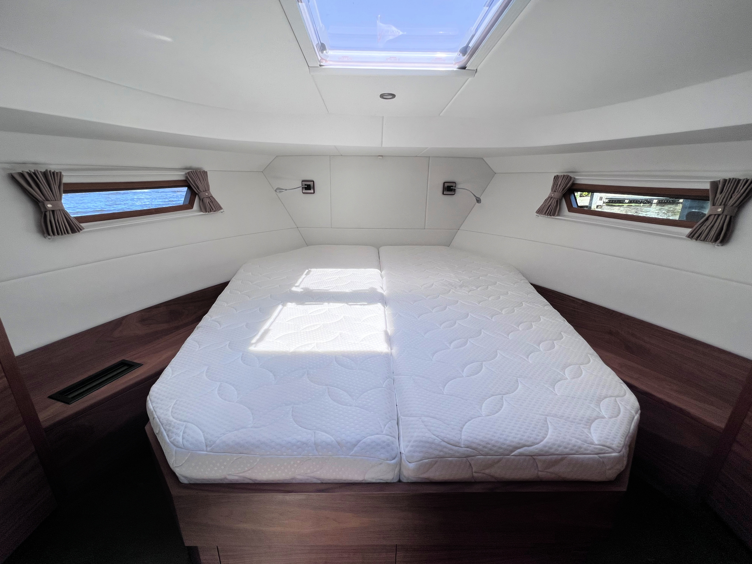 Trotz ihrer kompakten Größe wirkt das Schiff großzügig und durchdacht. Die Aufteilung ist ruhig, praktisch und auf entspanntes Leben an Bord ausgerichtet. Geeignet für Binnen- und offene Gewässer in ganz Europa. Jedes Schiff wird bei DSA Yachts in Ossenzijl individuell nach Kundenwunsch gebaut.