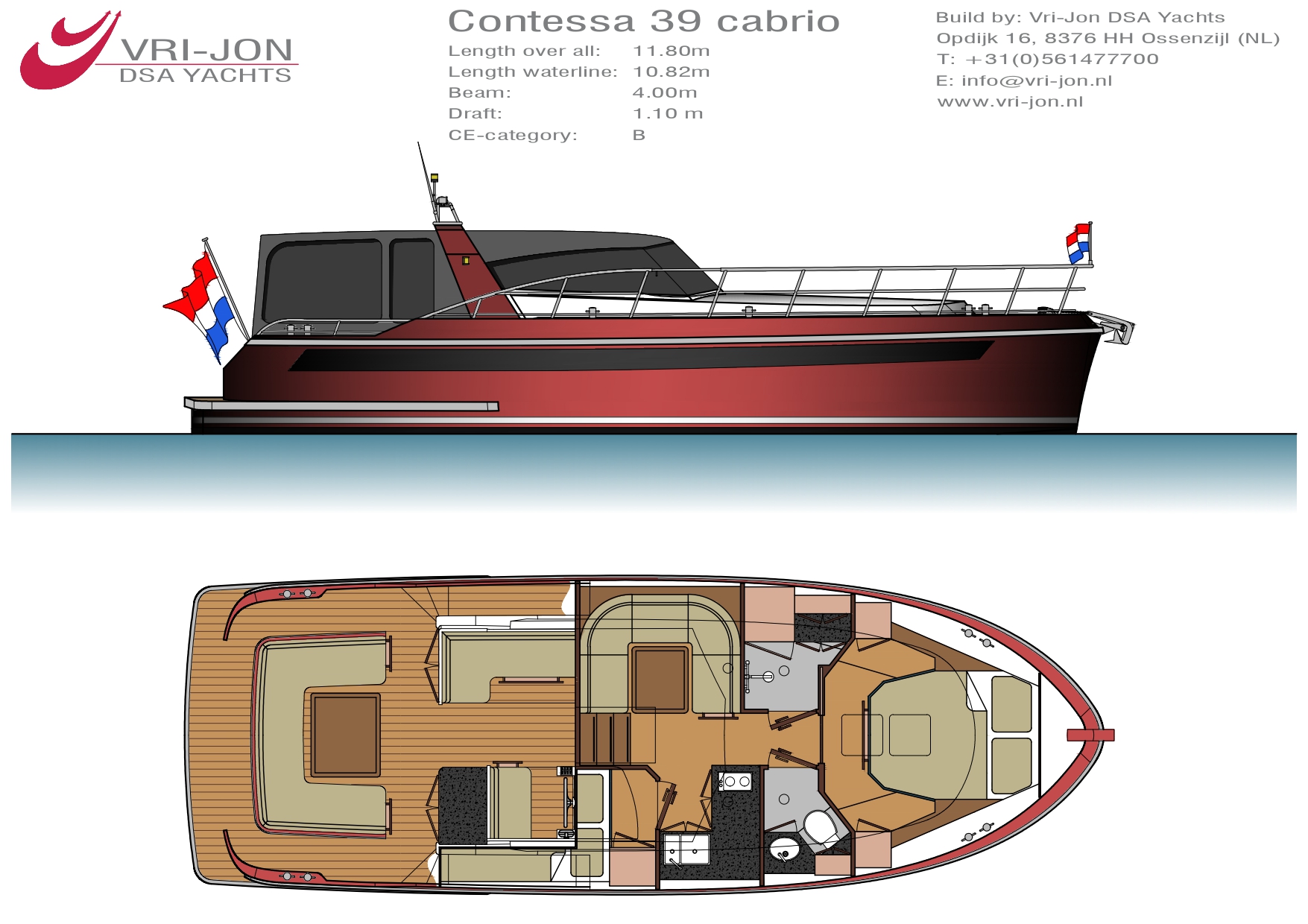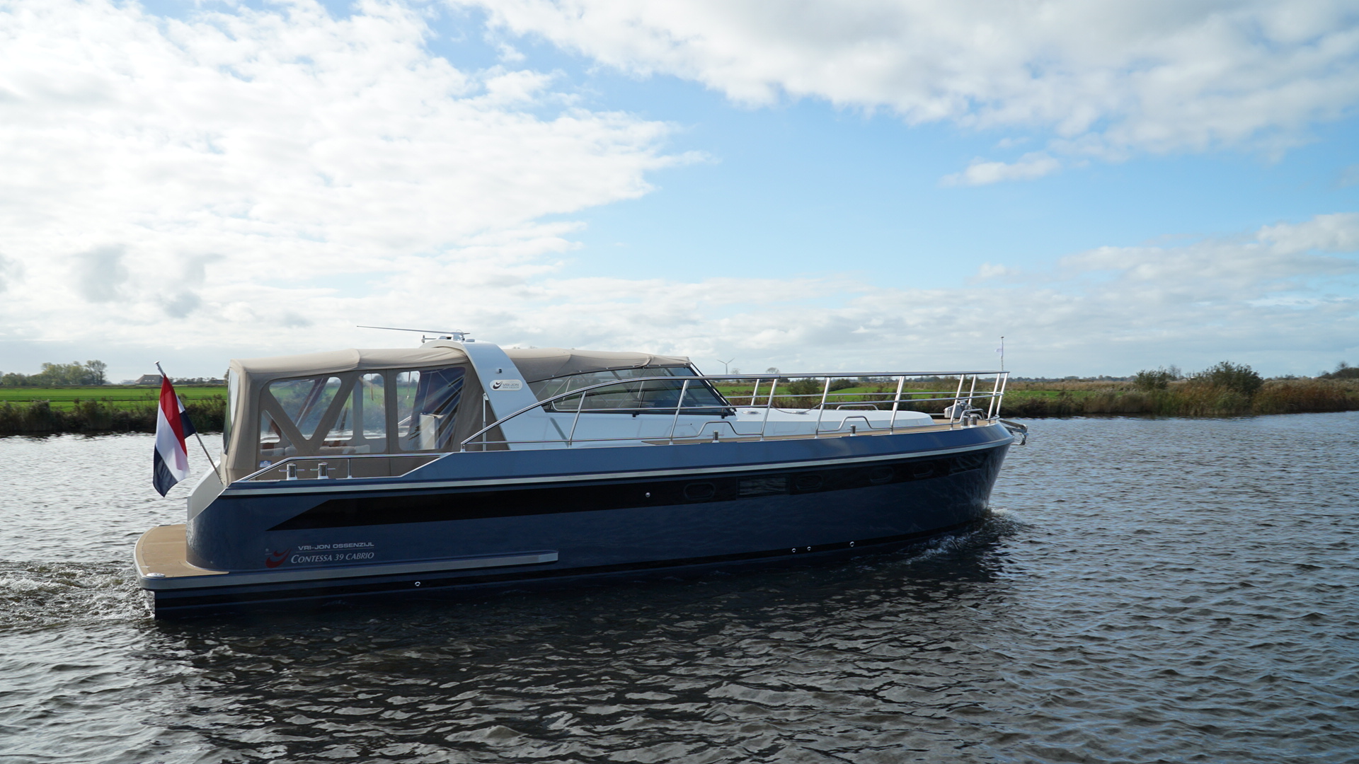 > Vri-Jon Contessa 39 OC Eine völlig neue Art und Design sehr luxuriöse Stahl Motoryacht mit offener Plicht und Platz für 4 Personen die für alle Binnen- und offenen Gewässer in Europa eingesetzt werden kann. 11,80 m x 4,00 m x 1,10 m | Stahl
