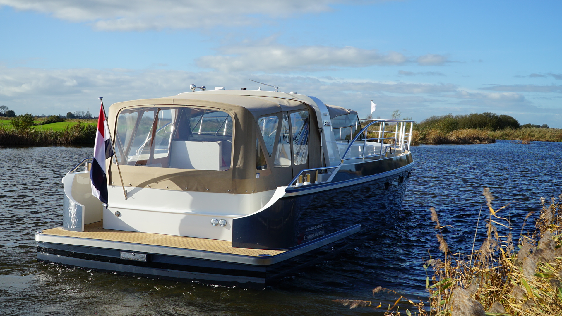 > Vri-Jon Contessa 42 Cabrio Großzügige Cabrio-Motoryacht mit zwei Kabinen. 12,46 m x 4,20 m x 1,10 m | Stahl