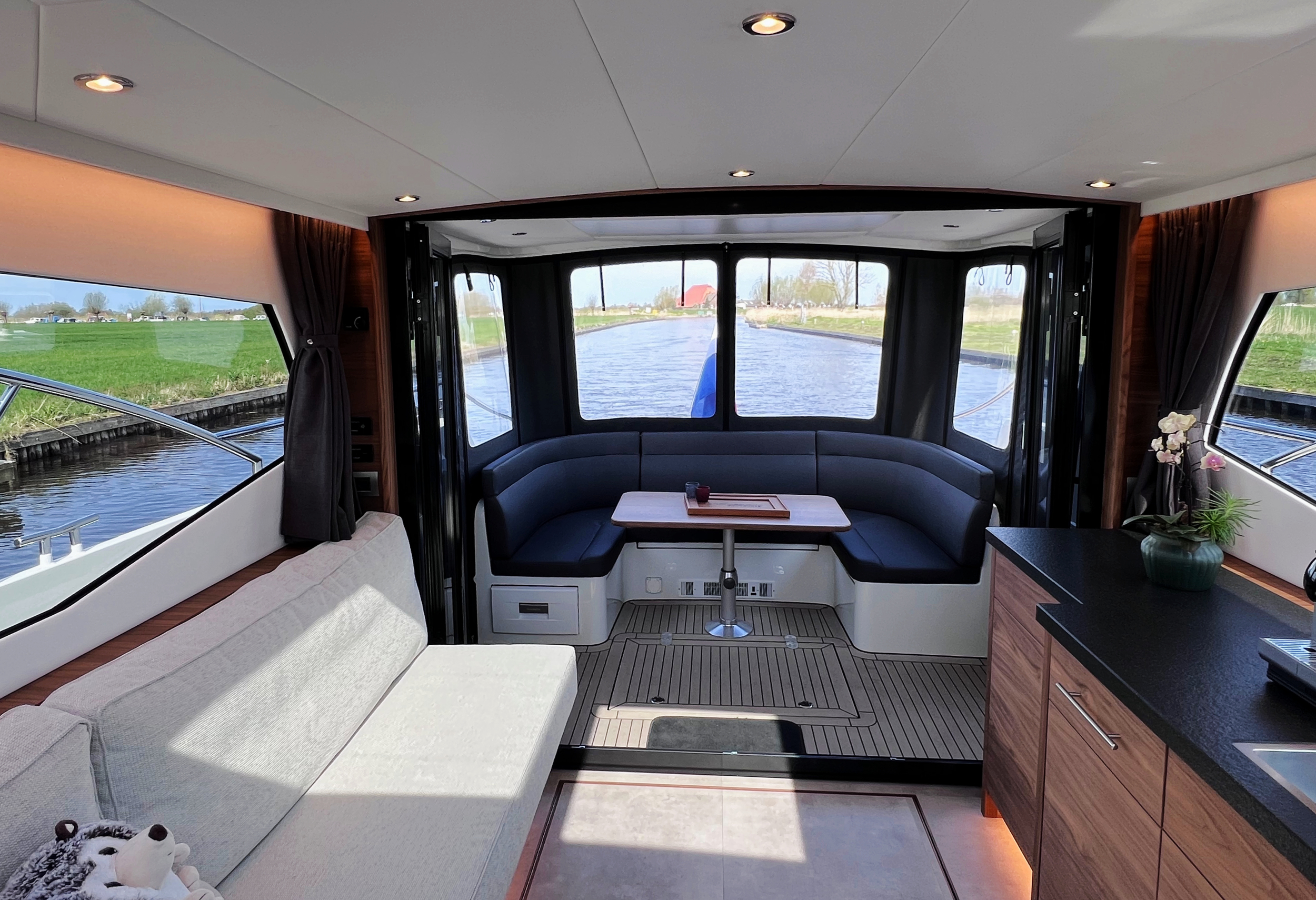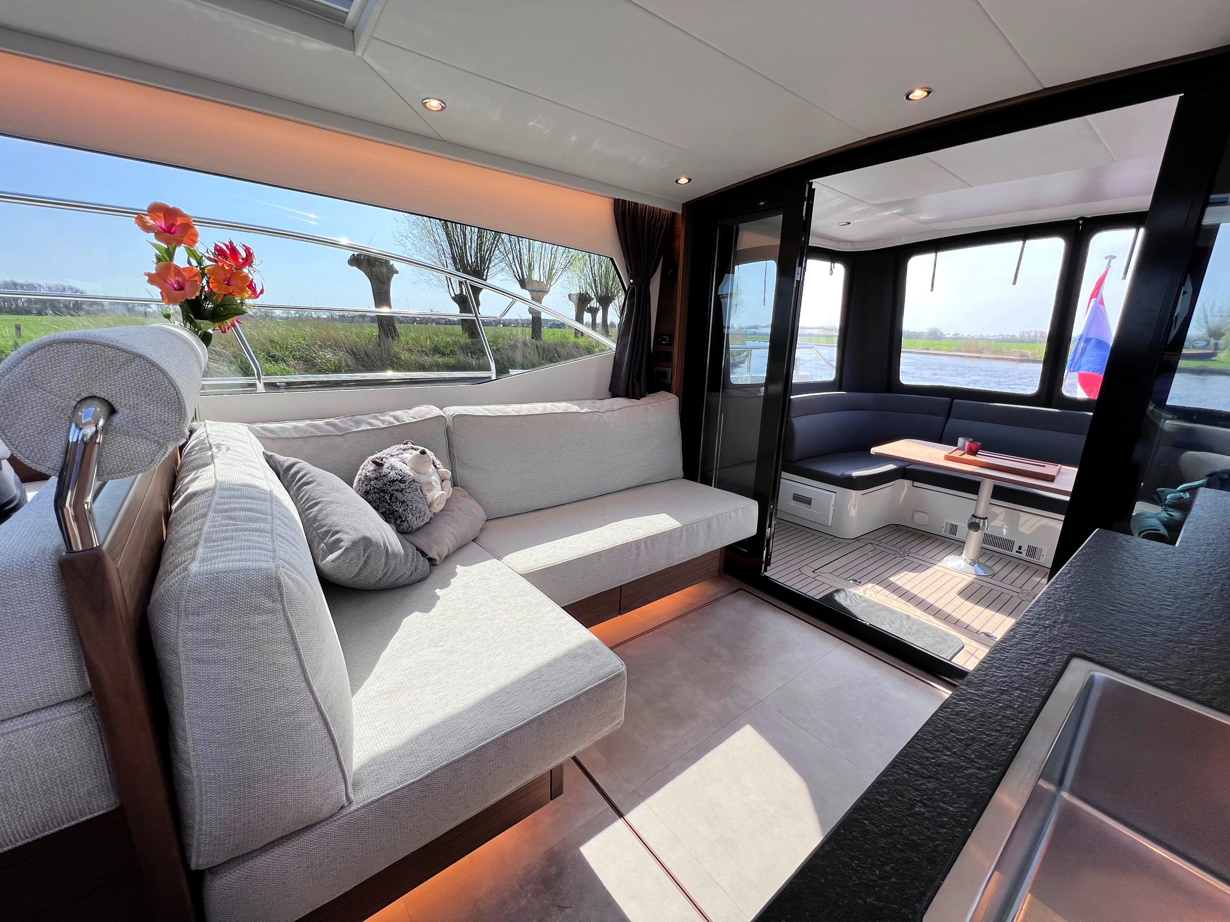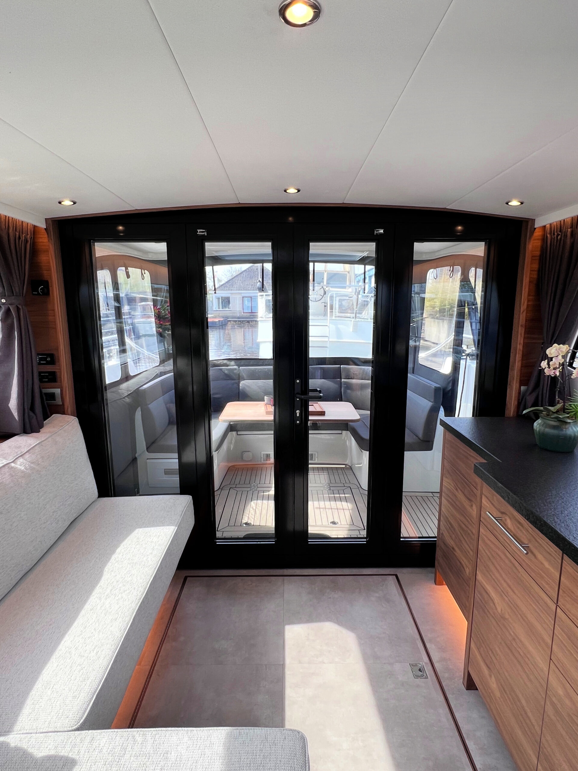 Das offene Plichtkonzept verbindet Innen- und Außenbereich auf angenehme Weise. Die durchdachte Aufteilung macht das Schiff ideal für längere Reisen und Aufenthalte an Bord. Wie alle Contessa-Modelle wird auch dieses Schiff individuell bei DSA Yachts gebaut.