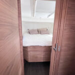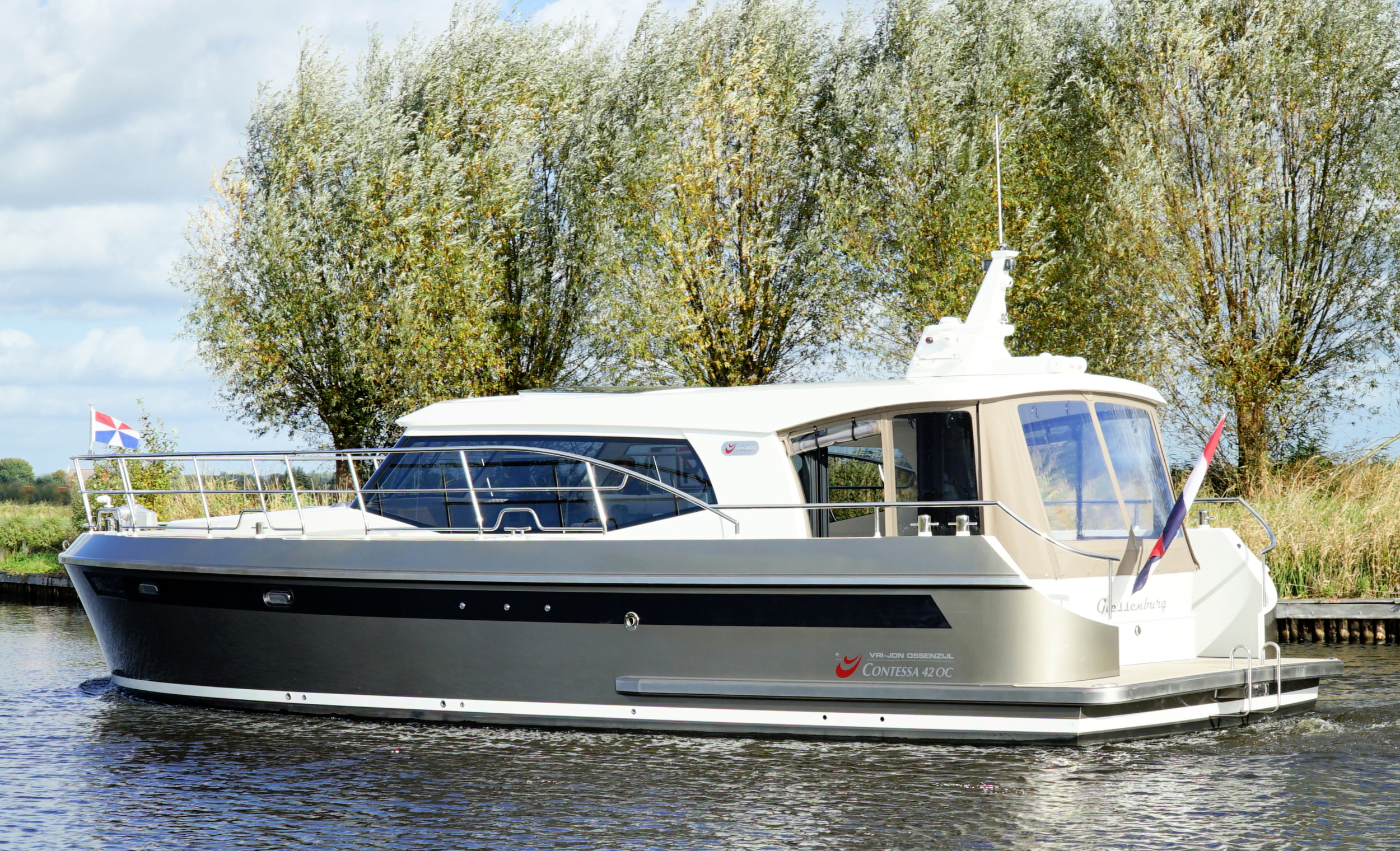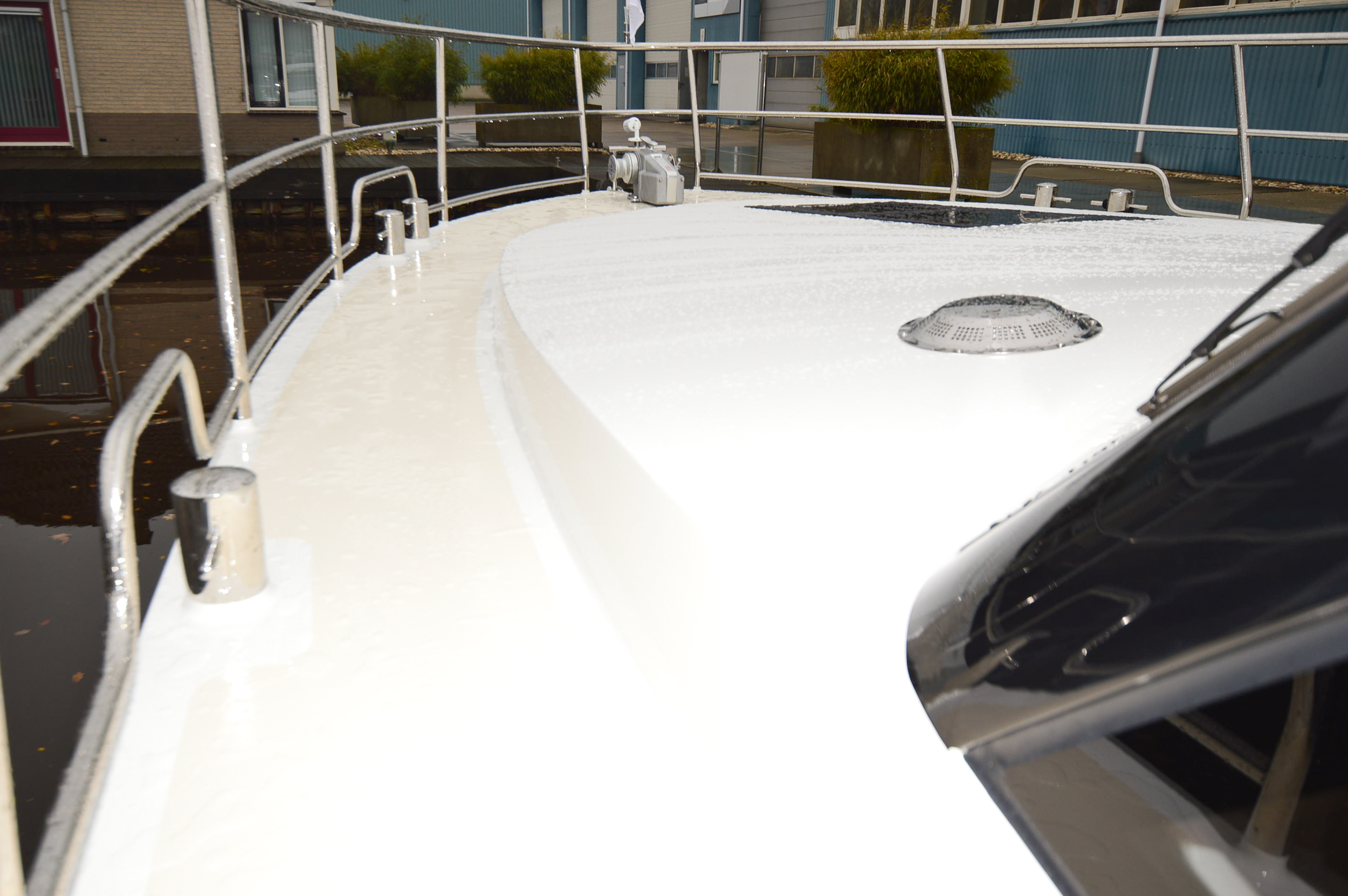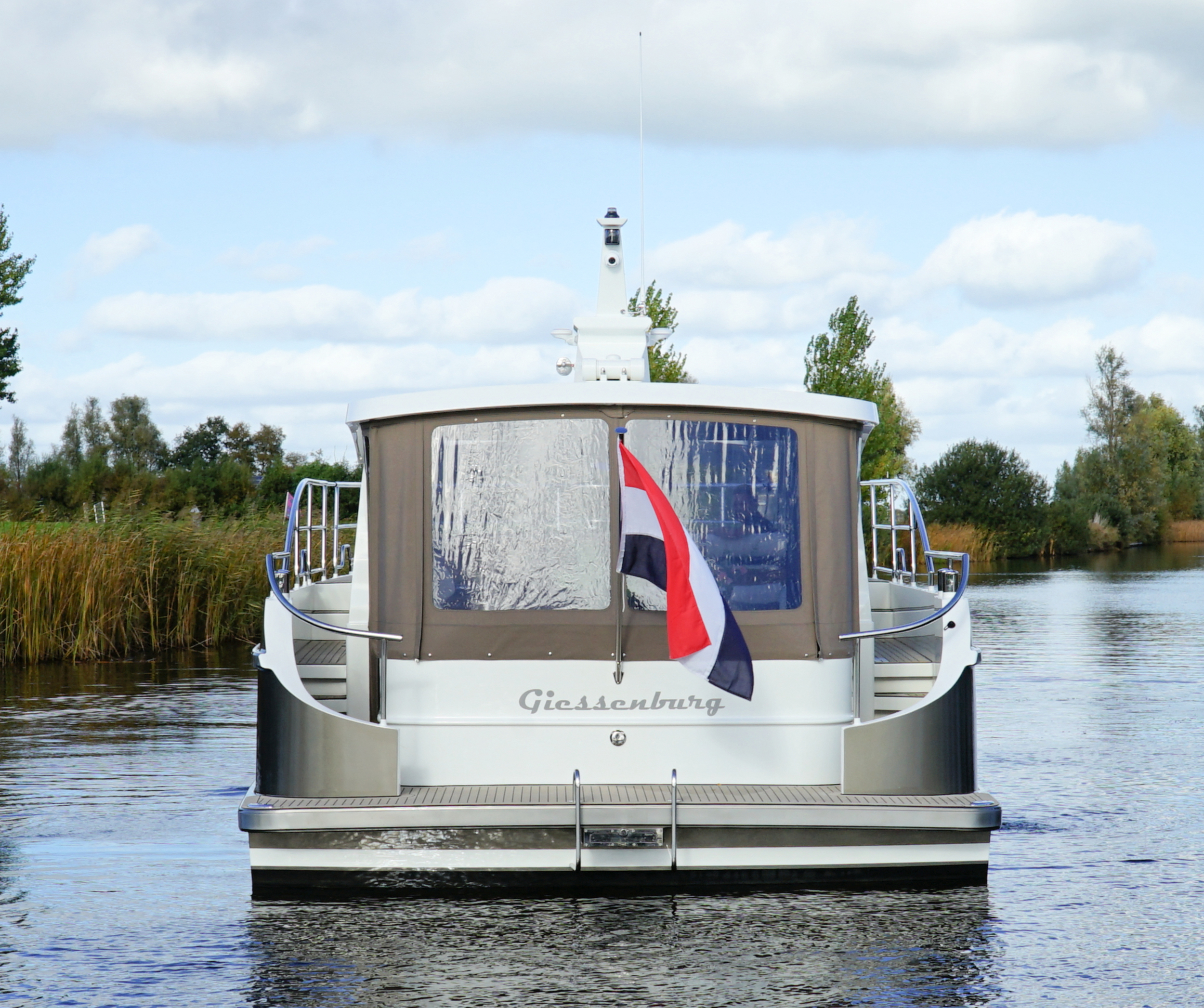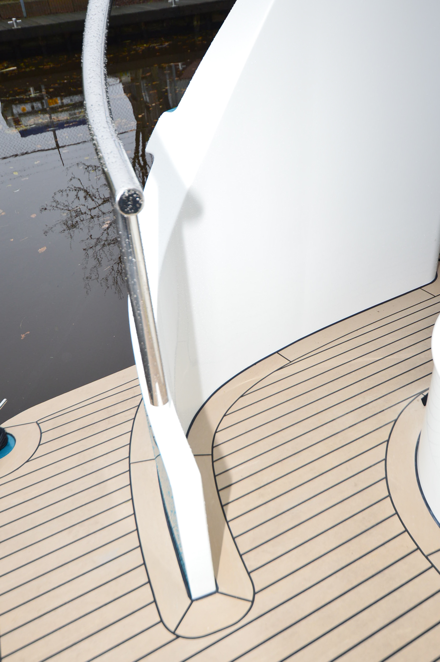Die zusätzliche Breite sorgt für ein helles, offenes Raumgefühl. Ausgelegt für vier Personen und geeignet für alle europäischen Gewässer. Maßanfertigung ist Standard.