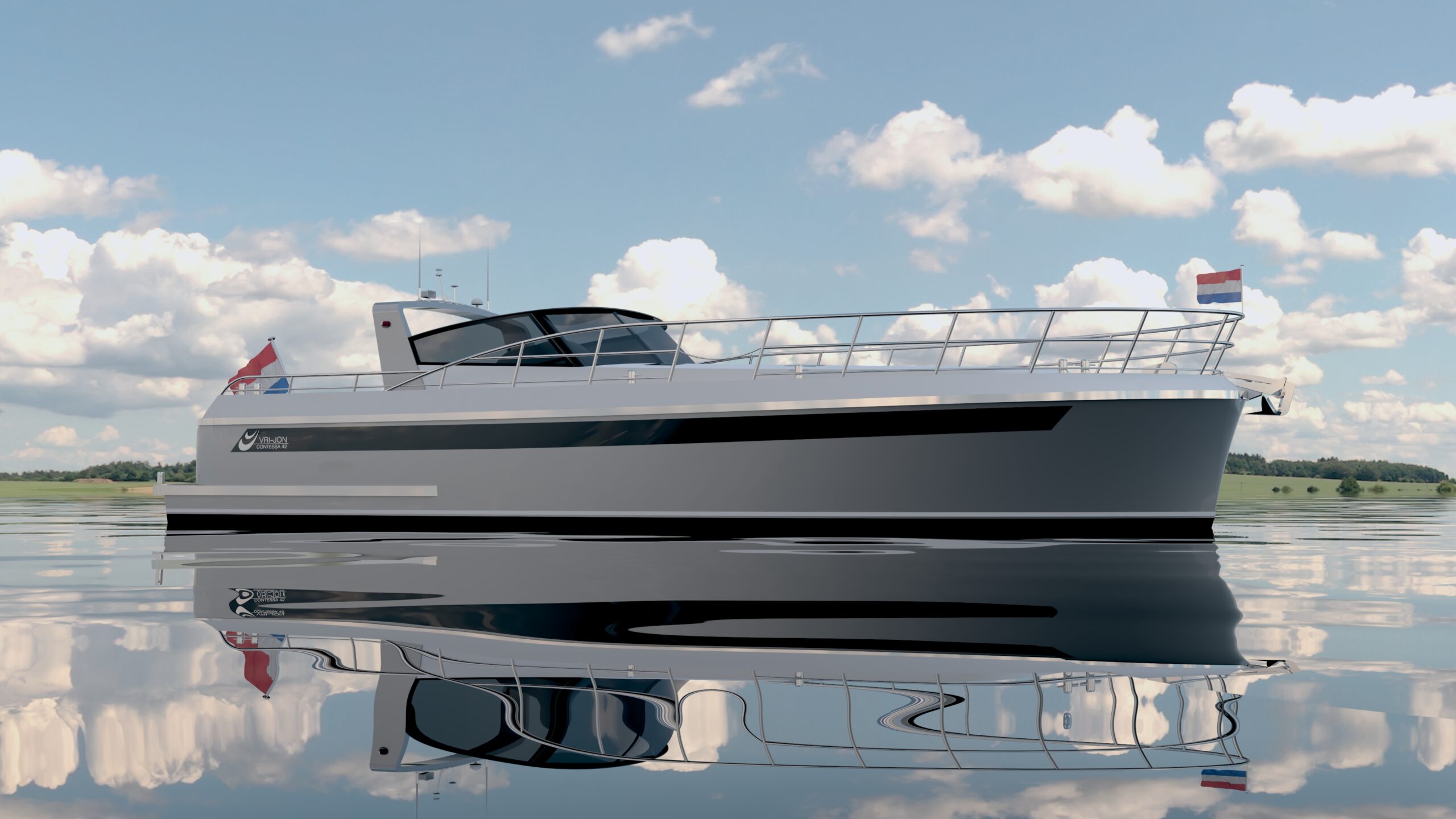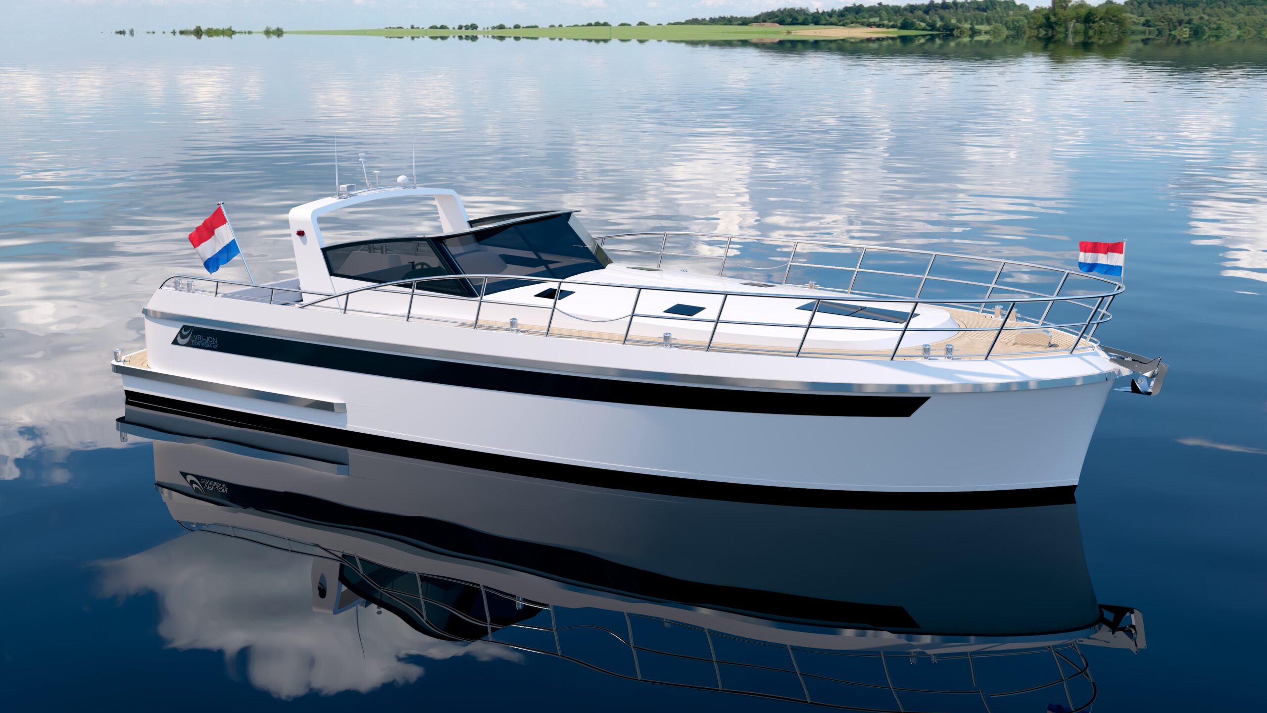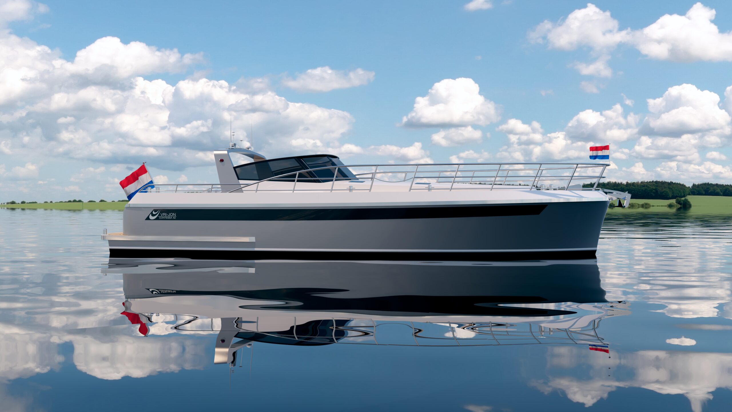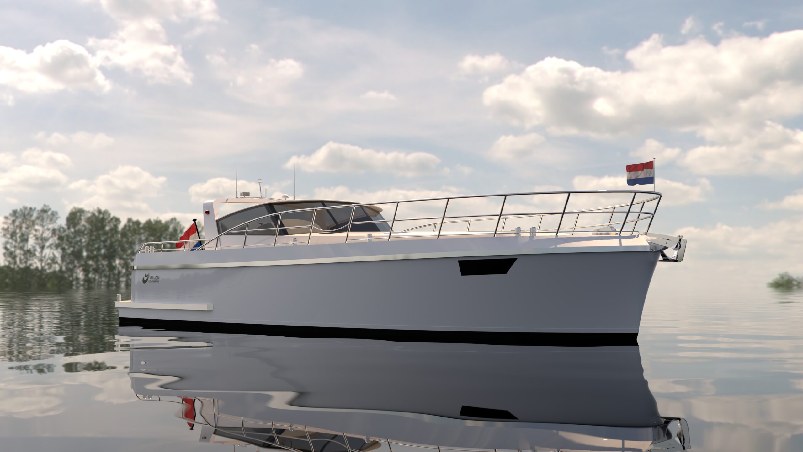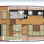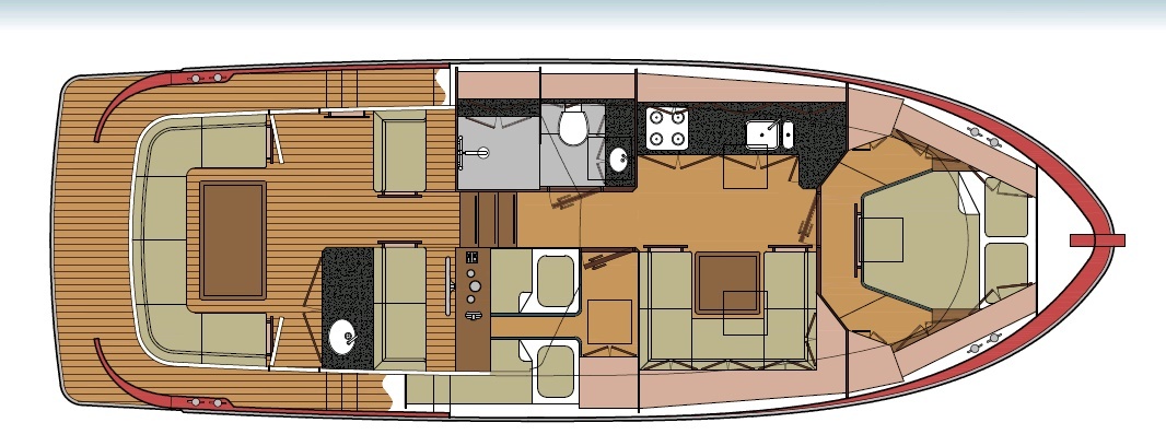 Standard layout includes two cabins and an enlarged living area. The cabrio roof allows flexible cruising in all conditions.