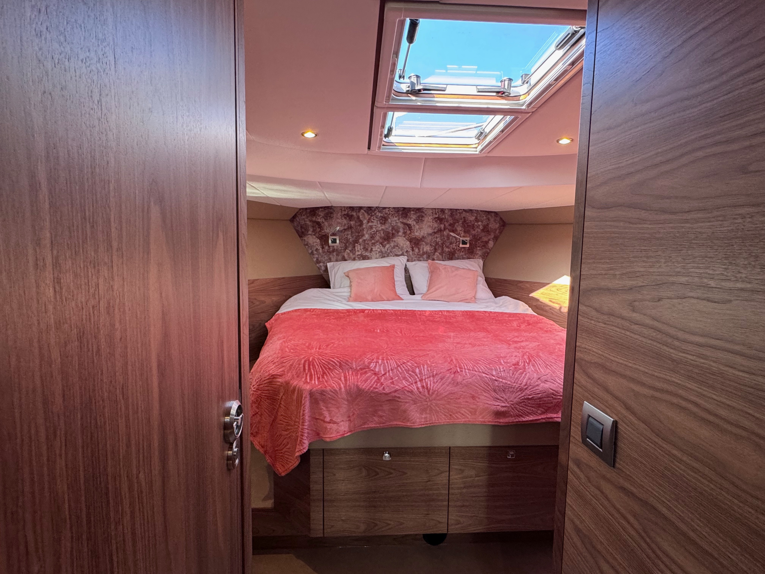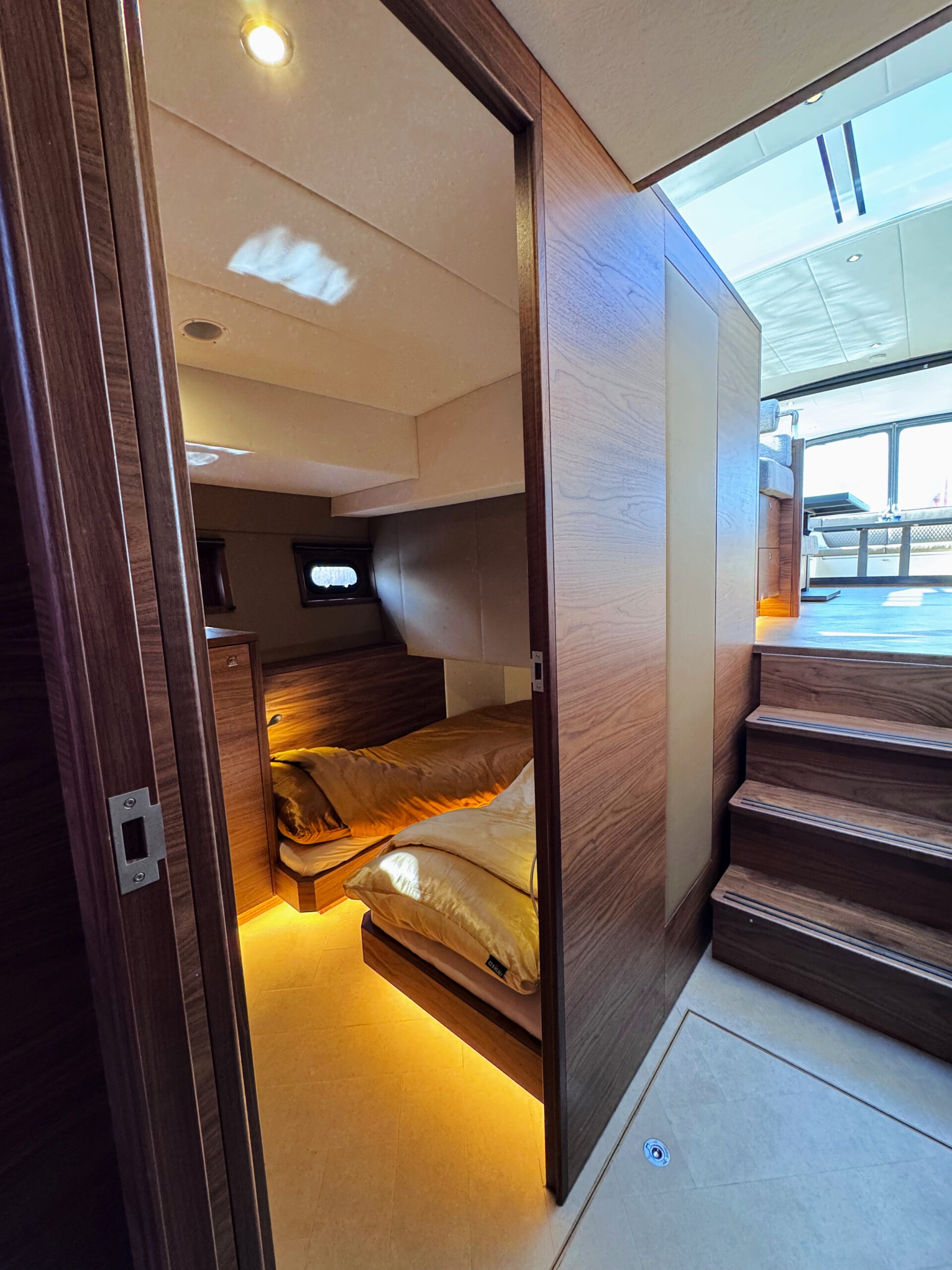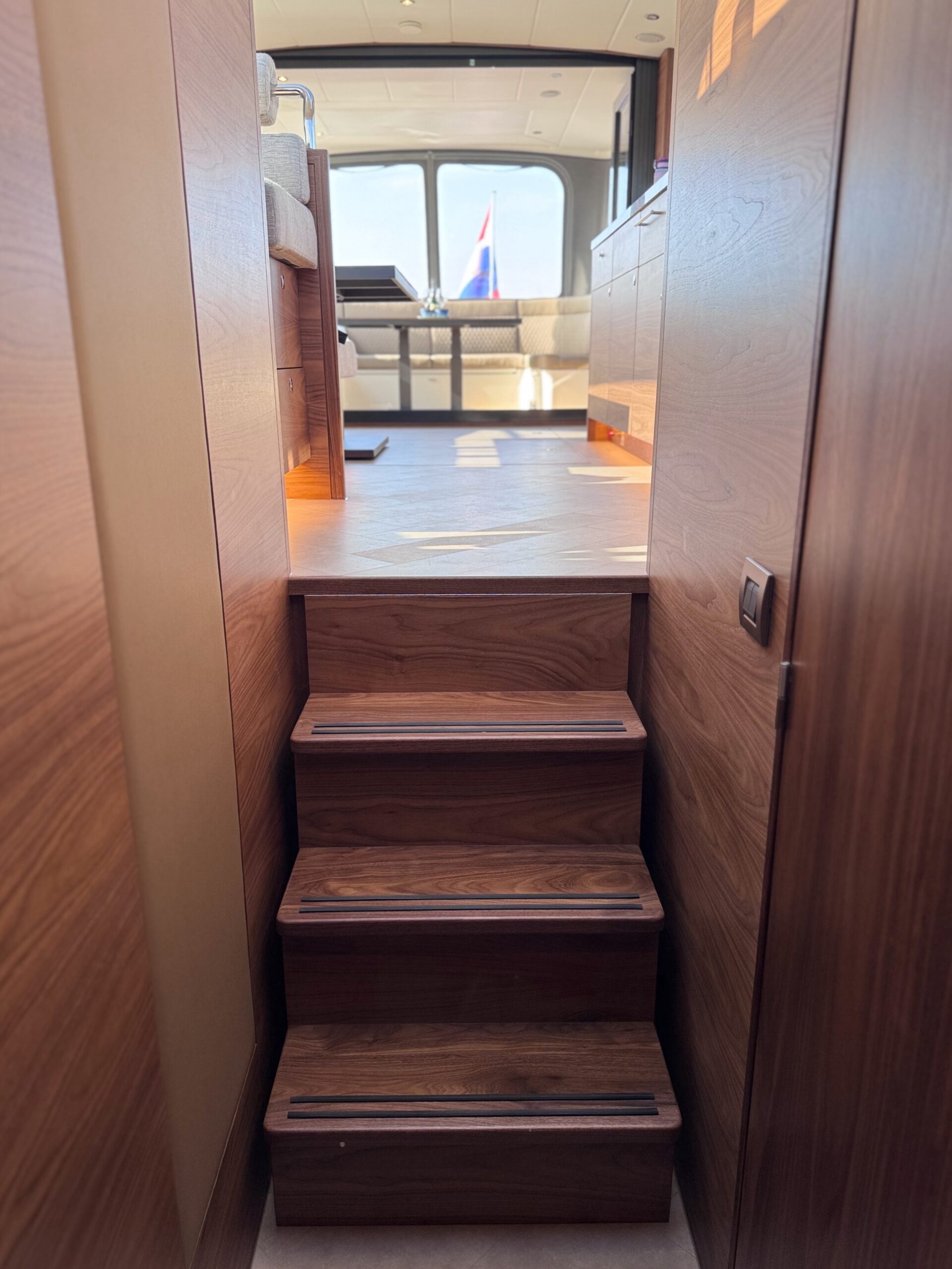 The interior can be fully tailored for long stays or even full-time living aboard. With generous cabins, multiple sanitary options and a spacious saloon, the yacht comfortably accommodates 6 to 8 people. Built without compromise for all European waters.