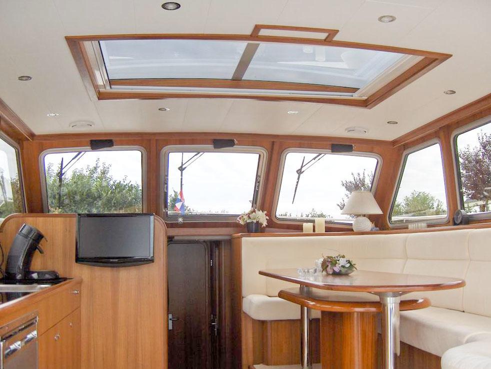 The Vri-Jon OK 45 Classic Royaal is an elegant and spacious open cockpit motor yacht designed for comfortable time aboard with multiple guests.