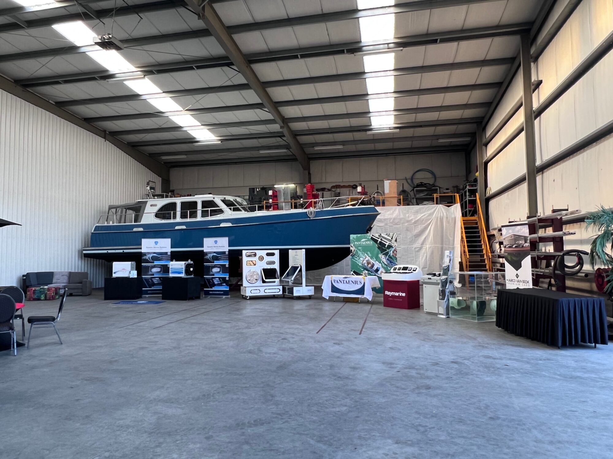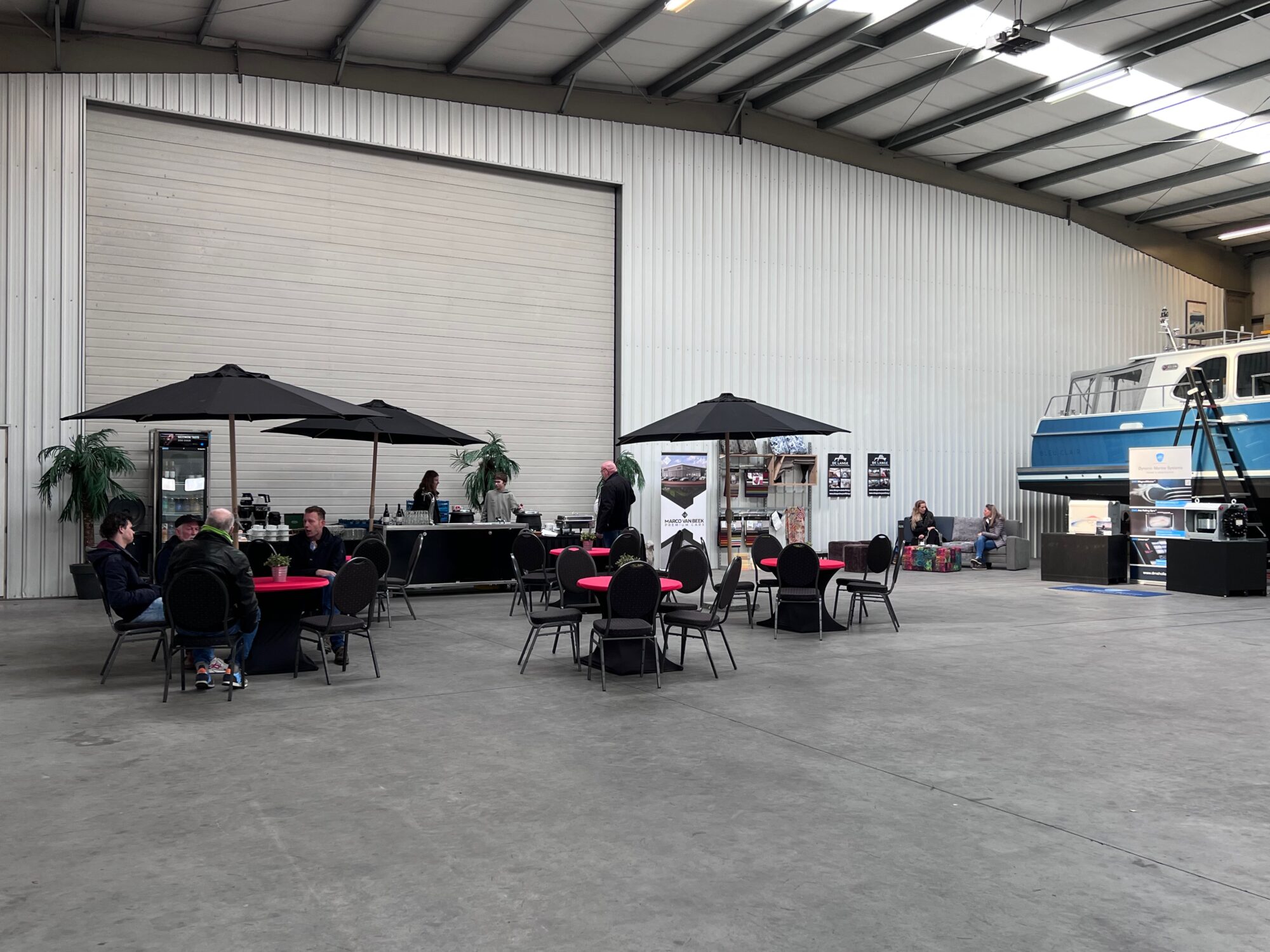 Onder het genot van een hapje en een drankje kregen de gasten een rondleiding langs de diverse bedrijven op ons terrein en maakten we proefvaarten met ons paradepaardje de Contessa. De volgende Contessa 42OC is zelfs voorzien van een stabilisator van DMS Holland en dat maakt een enorm verschil. Wij hebben dit eerder zelf ervaren en schreven er ook een bericht over.
