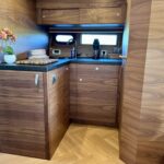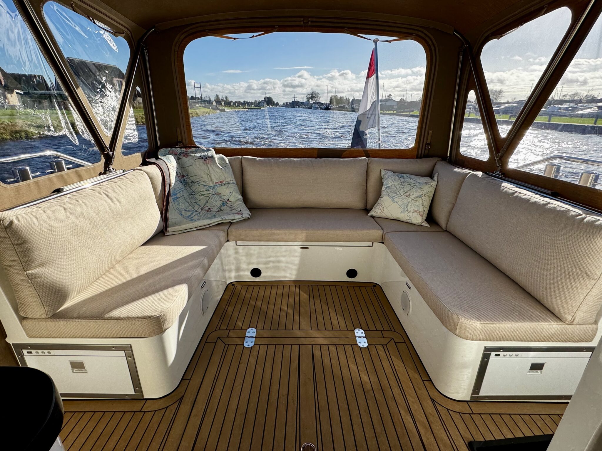 Hierdoor kan volledig open worden gevaren, wat zorgt voor een directe beleving van water en omgeving. Standaard is het schip voorzien van één hut, met de mogelijkheid tot een tweede. Geschikt voor 2 tot 4 personen.