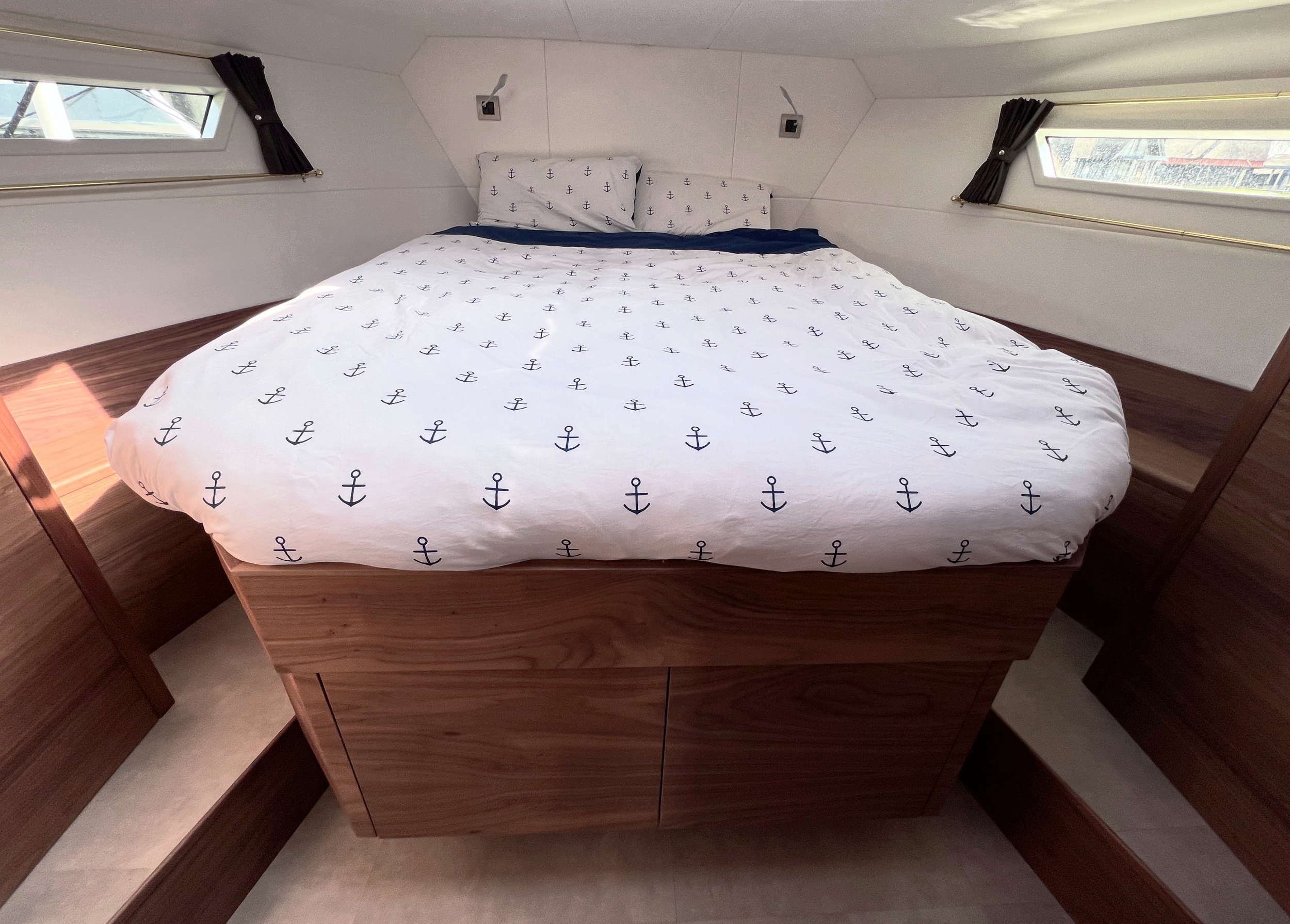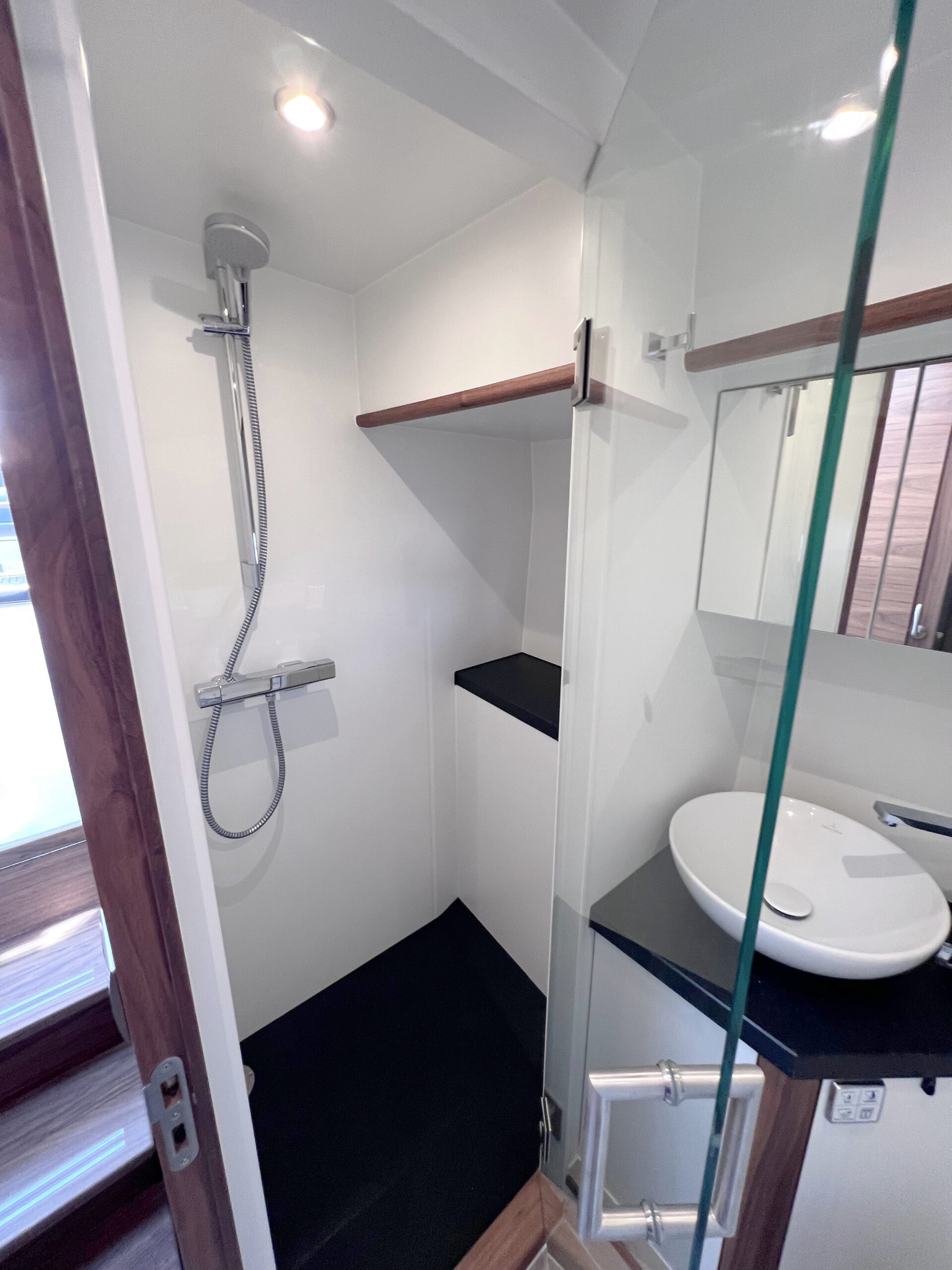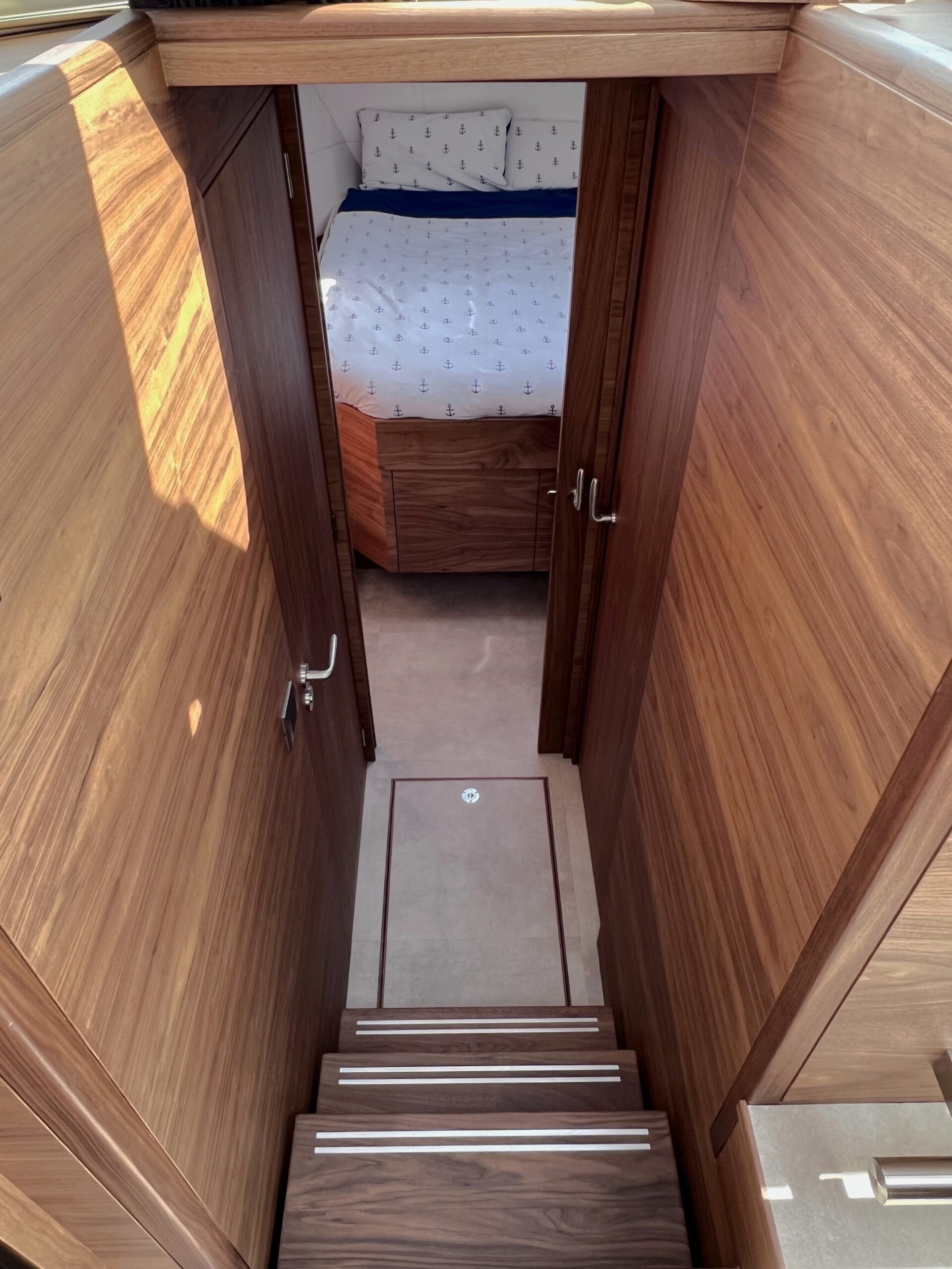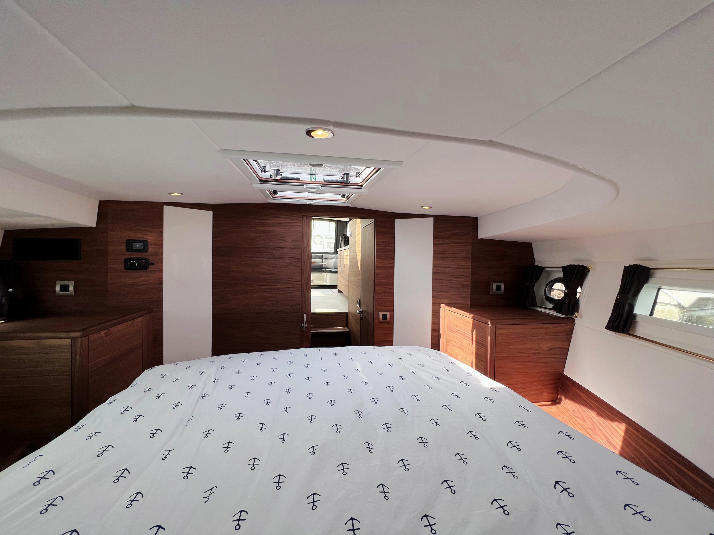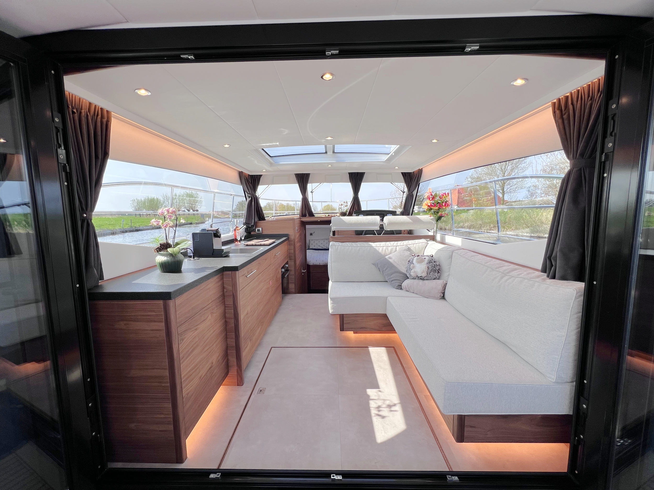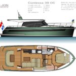 Het open-kuip ontwerp zorgt voor een prettige verbinding tussen binnen en buiten. Dankzij de slimme indeling is het schip comfortabel voor langere tochten en verblijf aan boord. Net als alle Contessa-modellen wordt ook dit jacht volledig custom built door DSA Yachts.