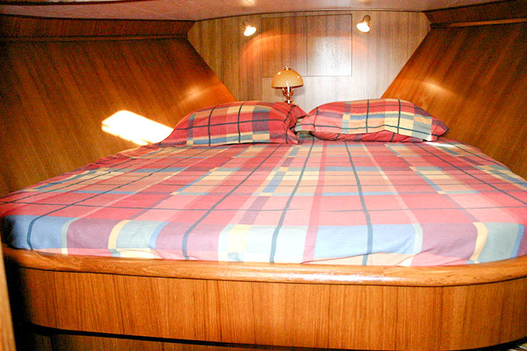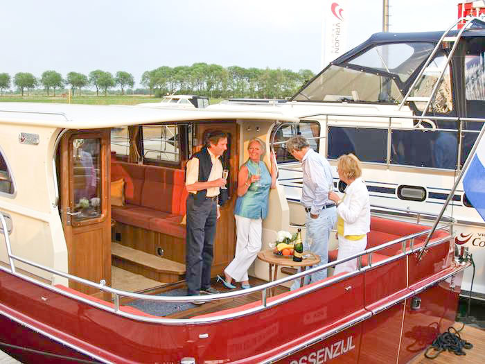 De Vri-Jon OK 42 Classic Royaal is een luxe open kuip motorjacht voor 2–4 personen met royale gelijkvloerse leefruimte en een combinatie van binnen- en buitenbesturing.
