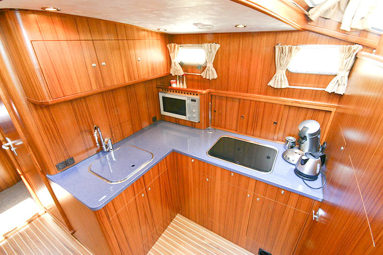 Het schip combineert stijlvolle lijnen met royale leefruimte, een brede open kuip en praktische routing aan boord. Custom build maakt het mogelijk om de indeling en afwerking aan te passen naar uw wensen.